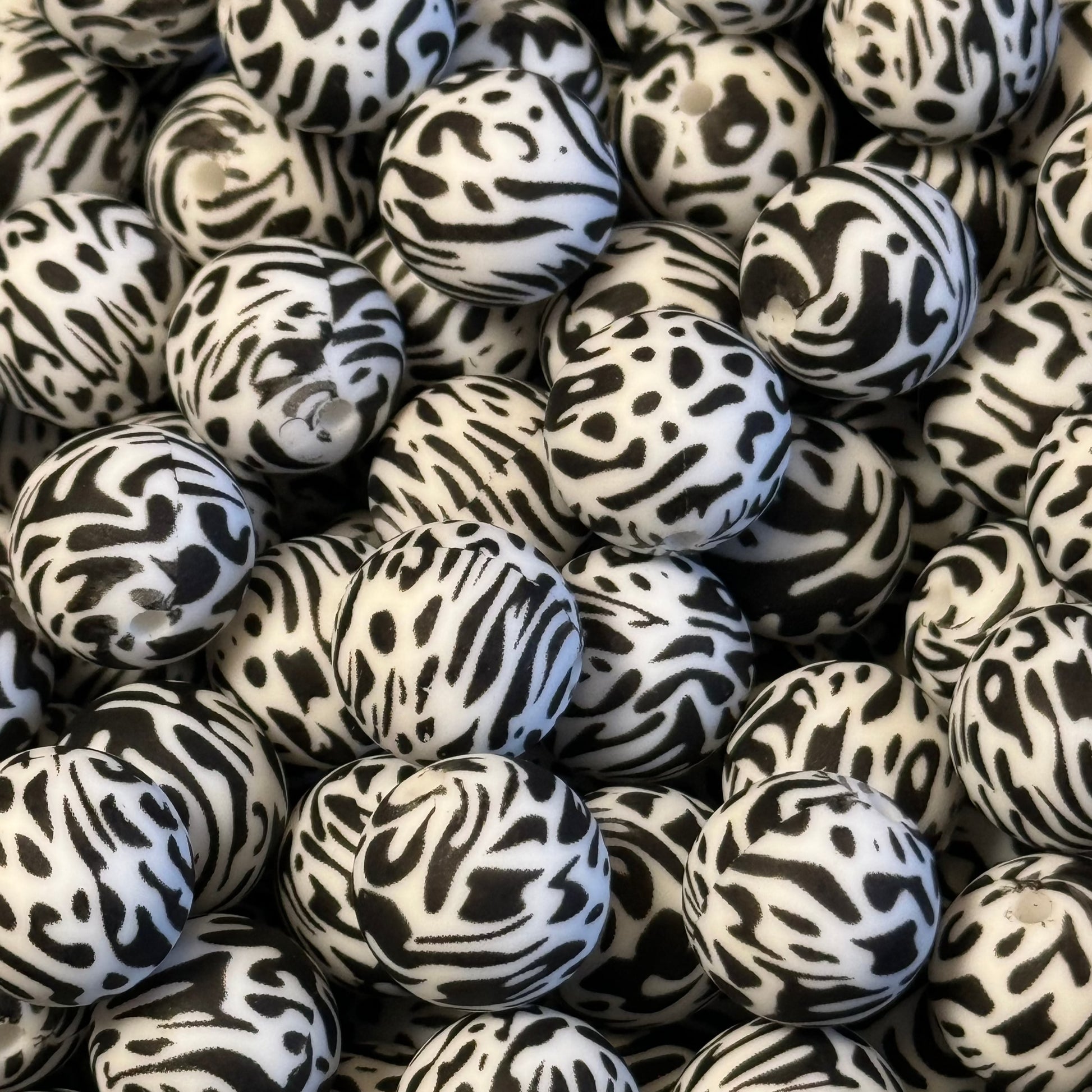 15mm Funky Cow Print Silicone Bead