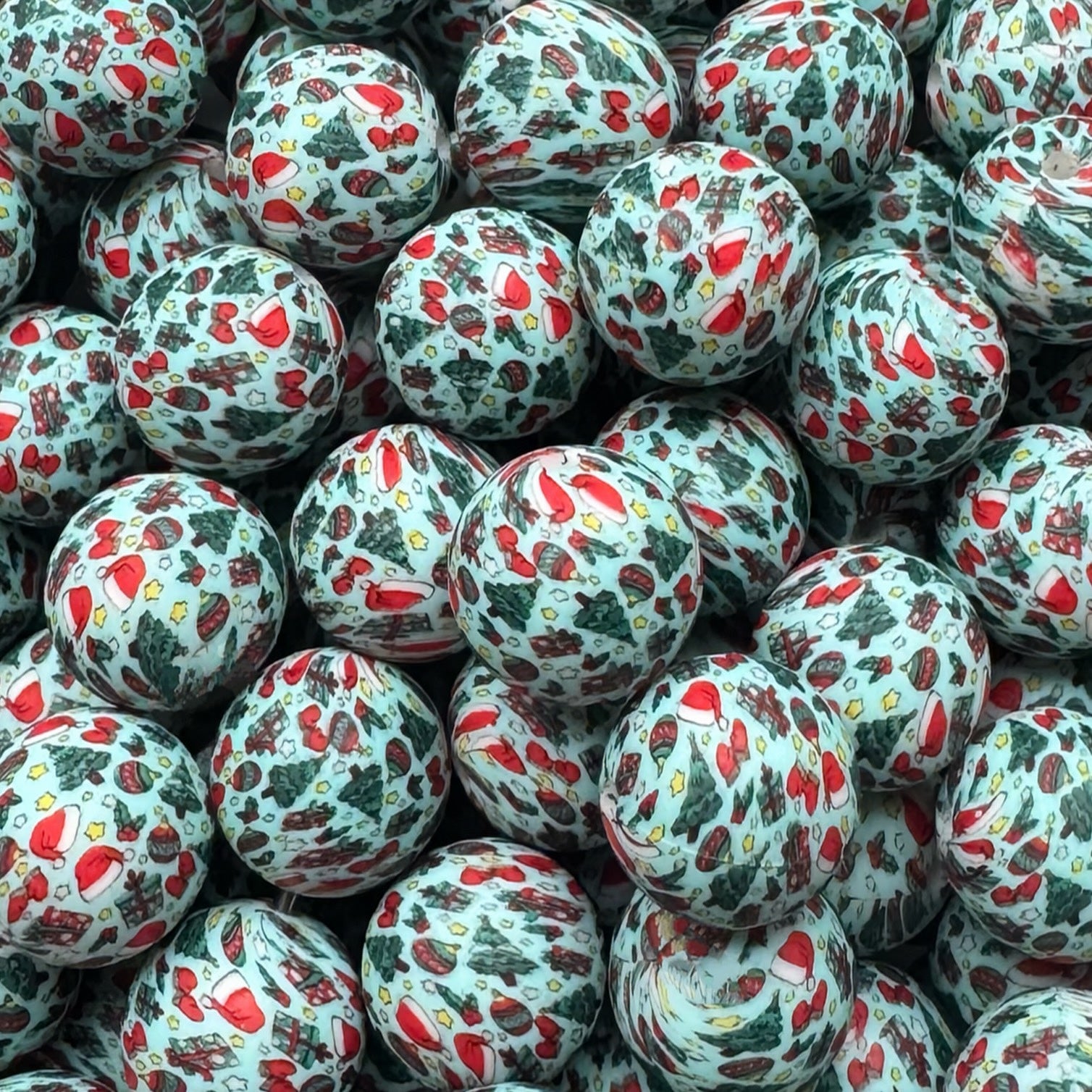 15mm Christmas Print Silicone Bead