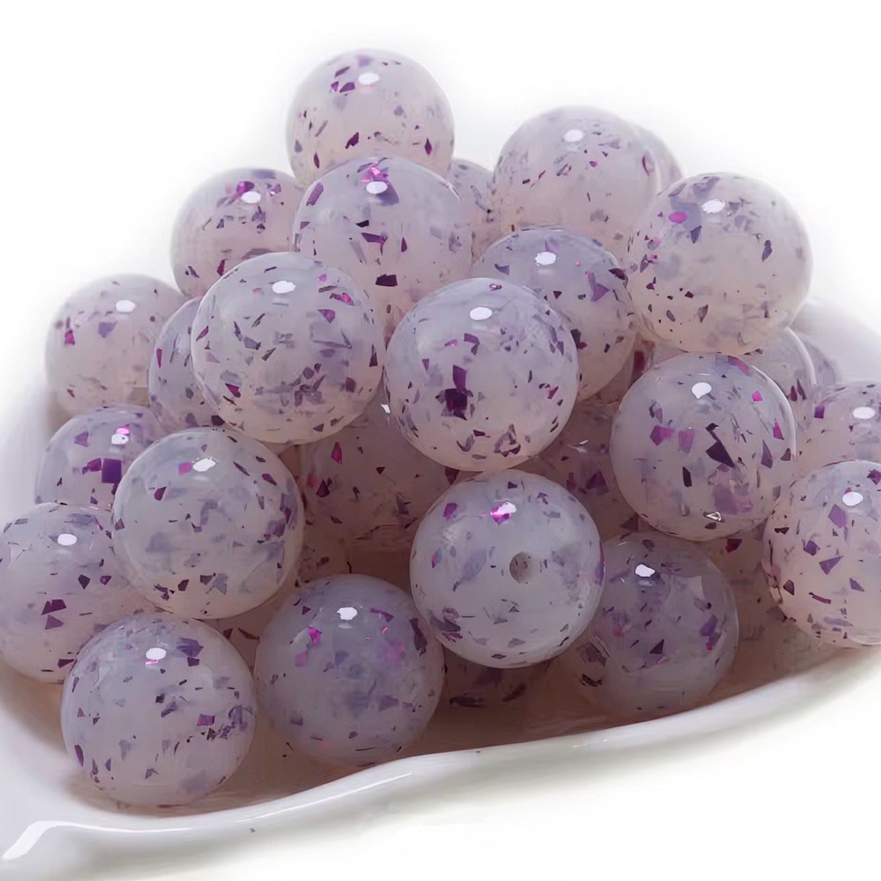 15mm Clear With Purple Specks Jelly Beads
