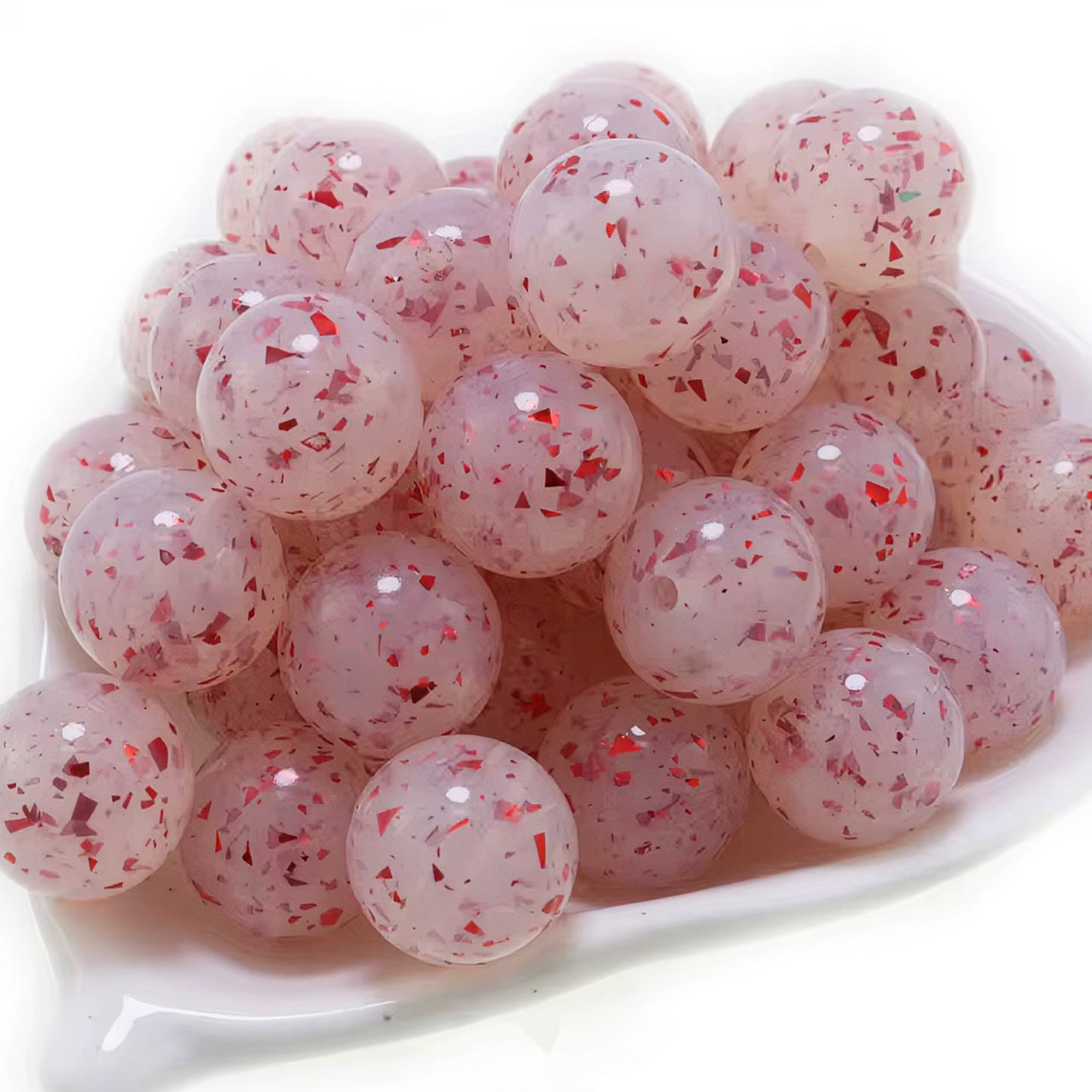 15mm Clear With Red Specks Jelly Silicone Beads
