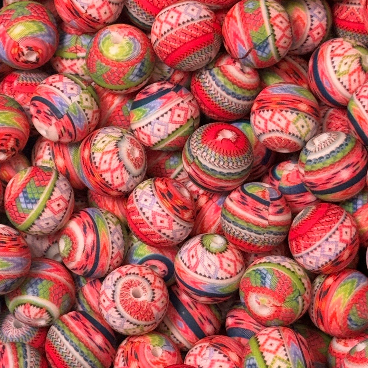 15mm Colorful Aztec Print Silicone Bead