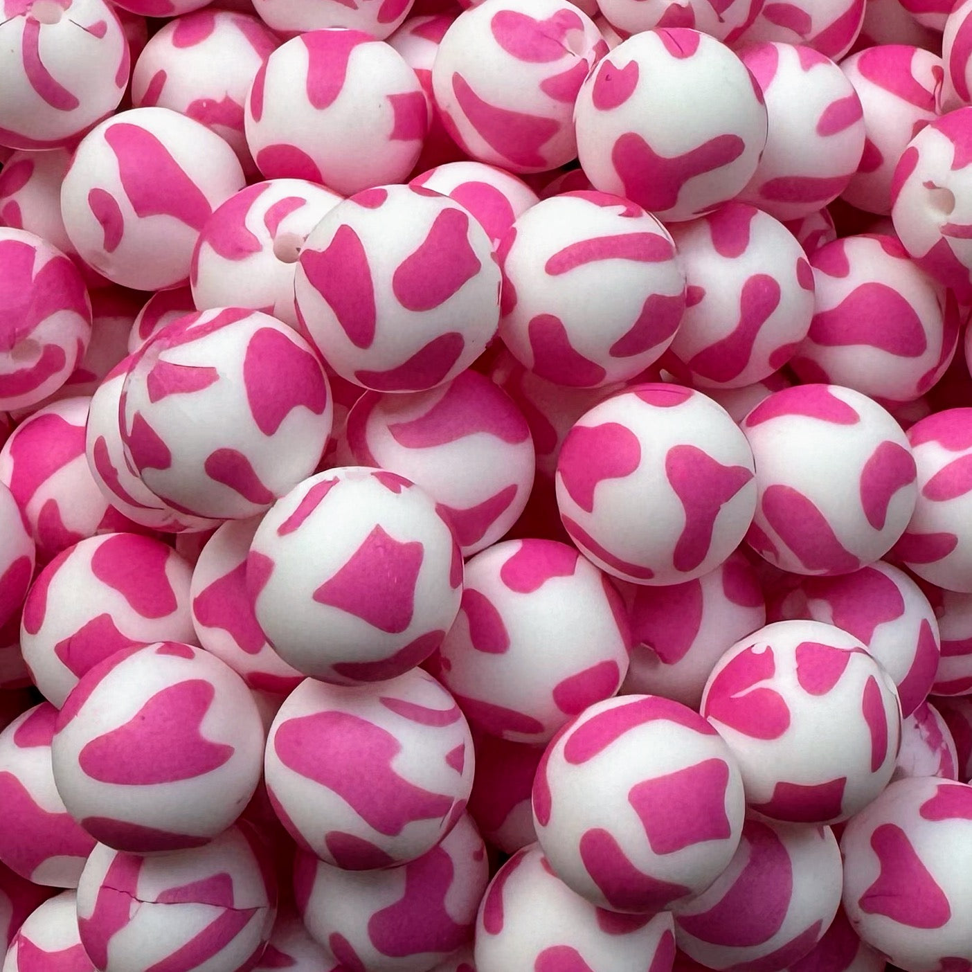15mm Custom Hot Pink Cow Print Silicone Bead