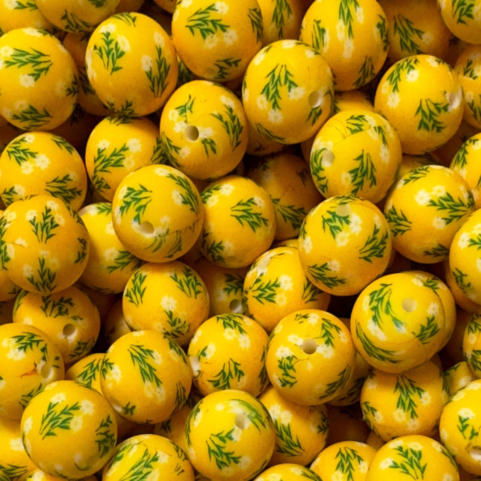 15mm Flowers on Yellow Silicone Bead