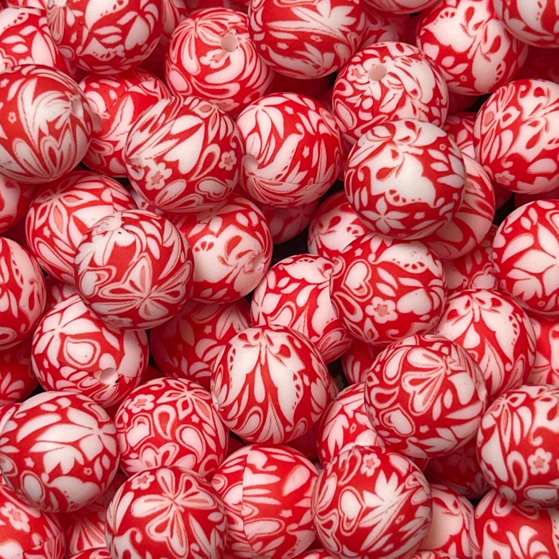15mm Hearts and Flowers on Red Silicone Bead