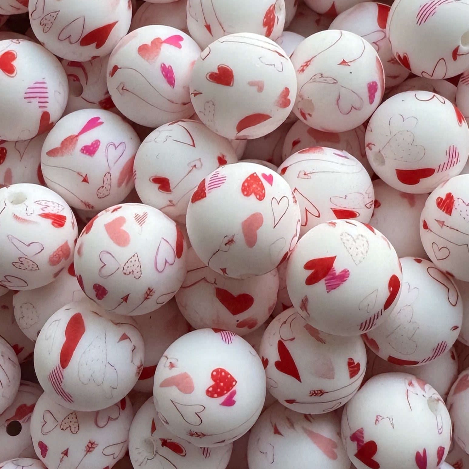 15mm Hearts On White Silicone Bead