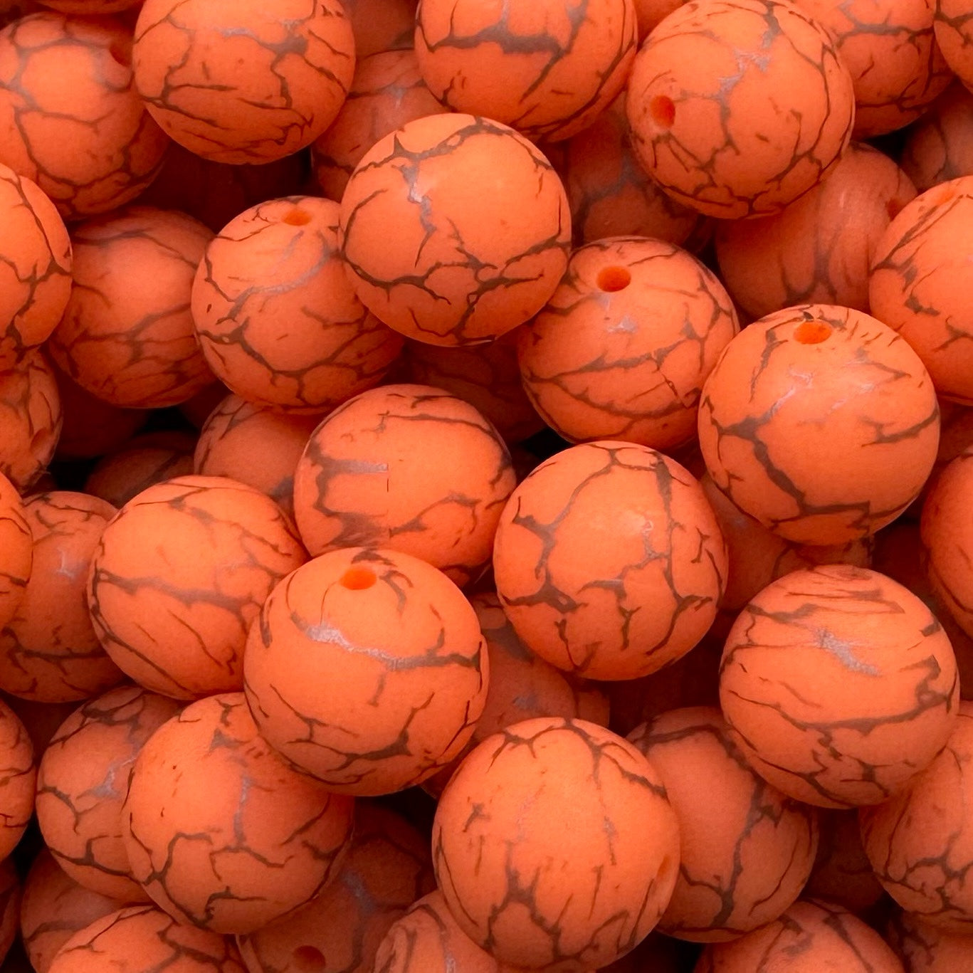 15mm Orange Crackle Silicone Bead