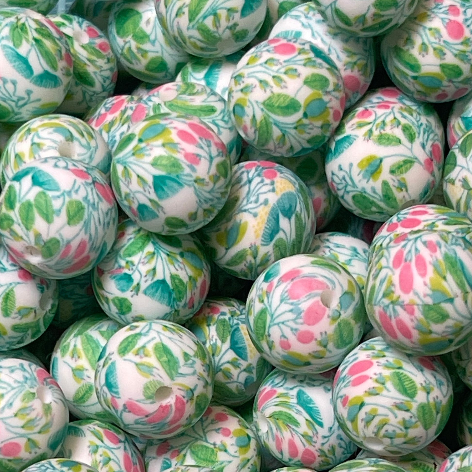 15mm print silicone beads with a hole size of 2mm.