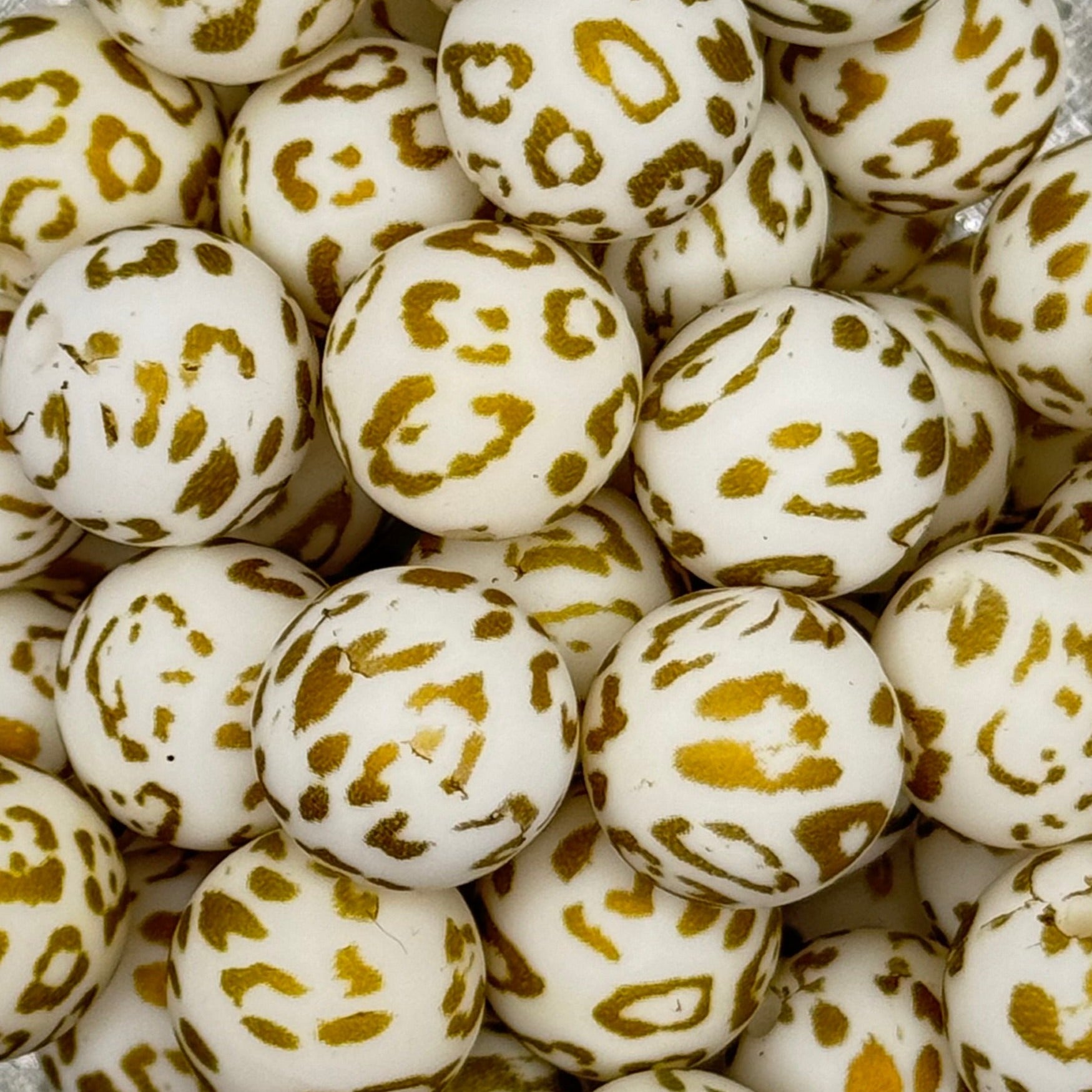 15mm Gold Animal Print Silicone Bead
