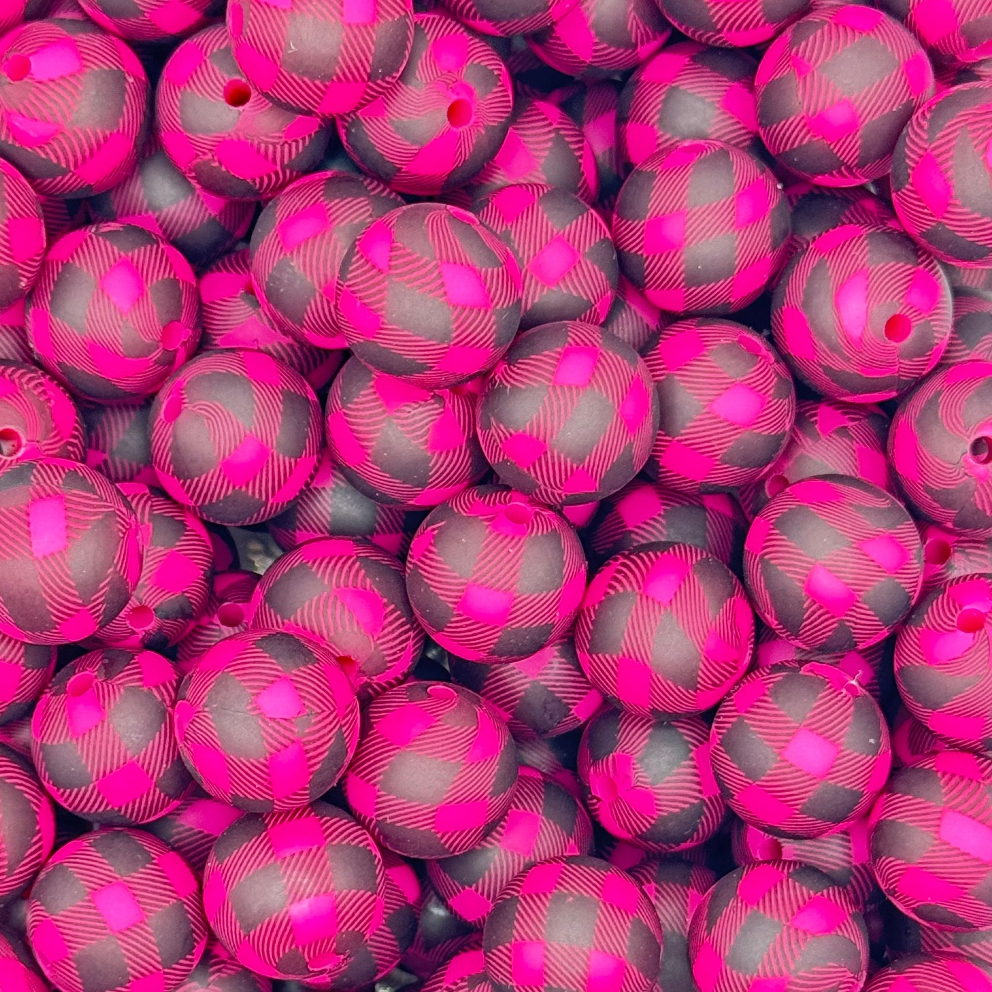 15mm Hot Pink Plaid Silicone Bead