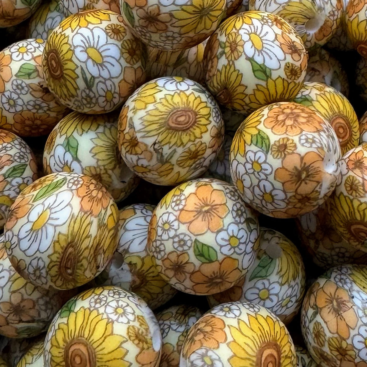 15mm Sunflower & Daisy Silicone Bead
