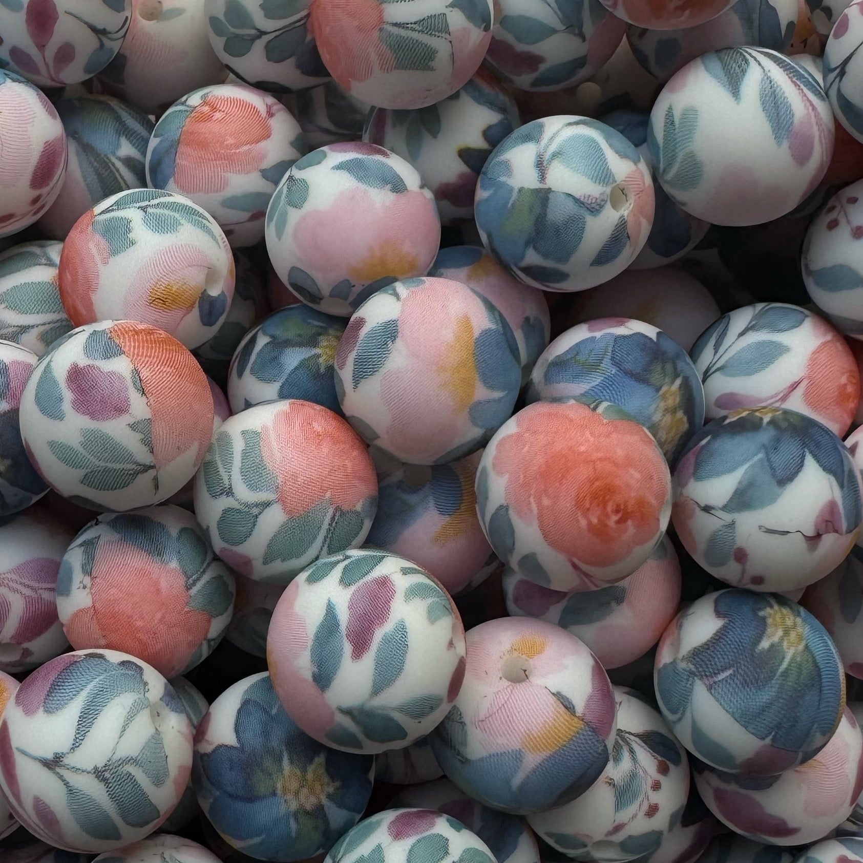15mm Watercolor Floral Silicone Bead