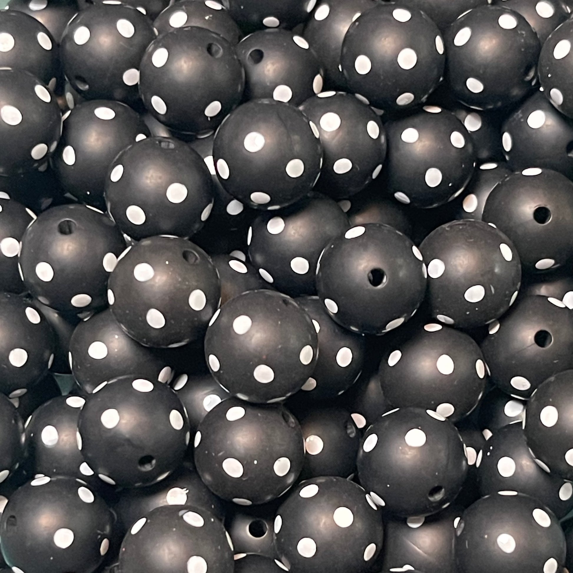 15mm White Dots on Black Silicone Bead