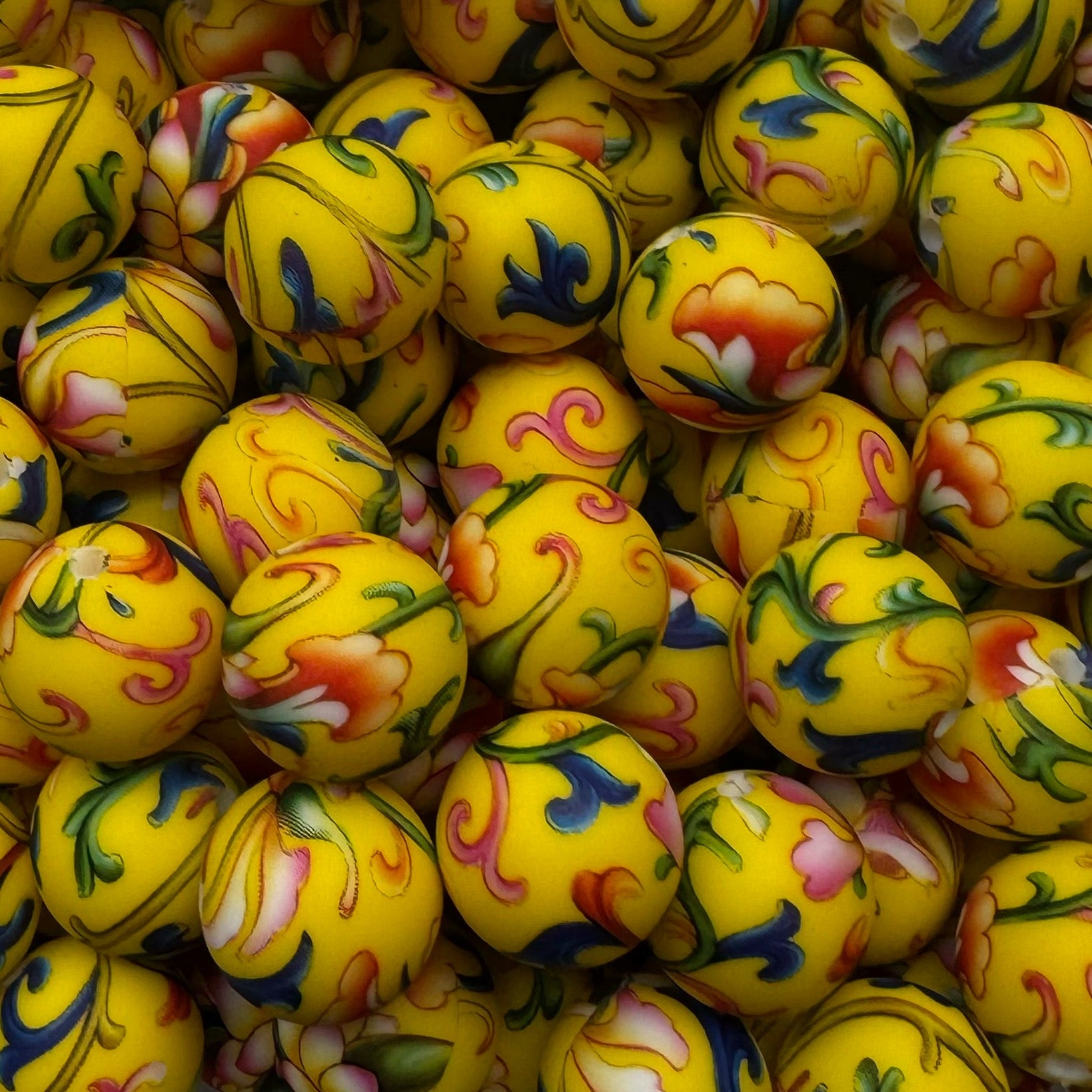 15mm Yellow Floral Silicone Bead