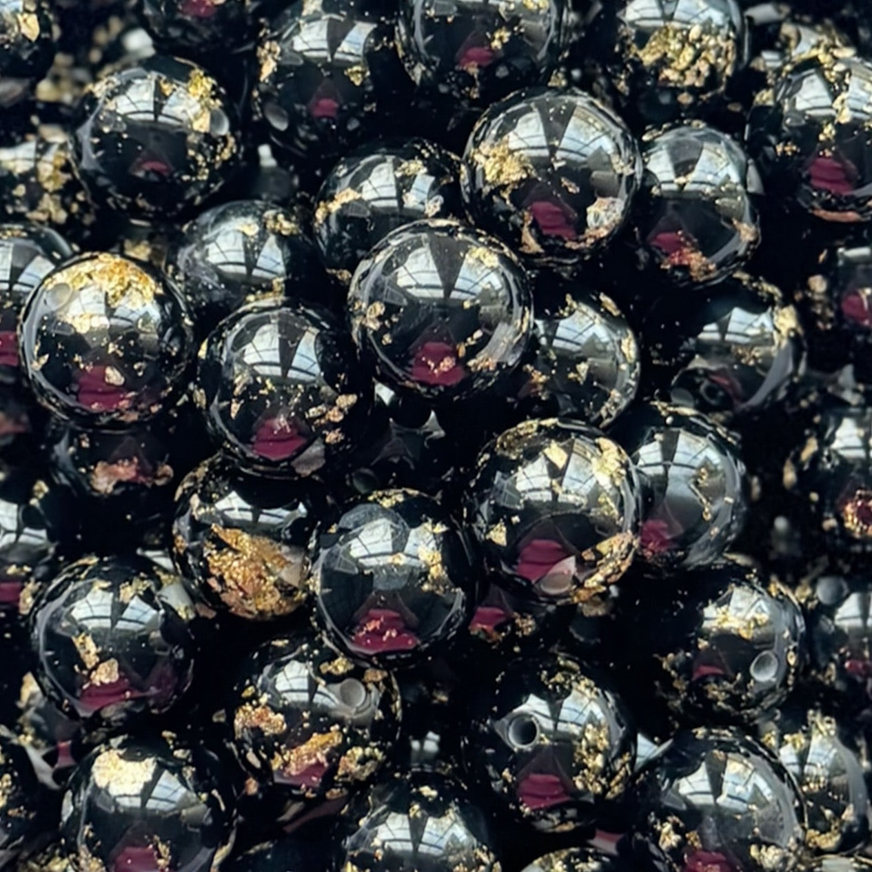 16mm Black With Gold Leaf Acrylic Bead