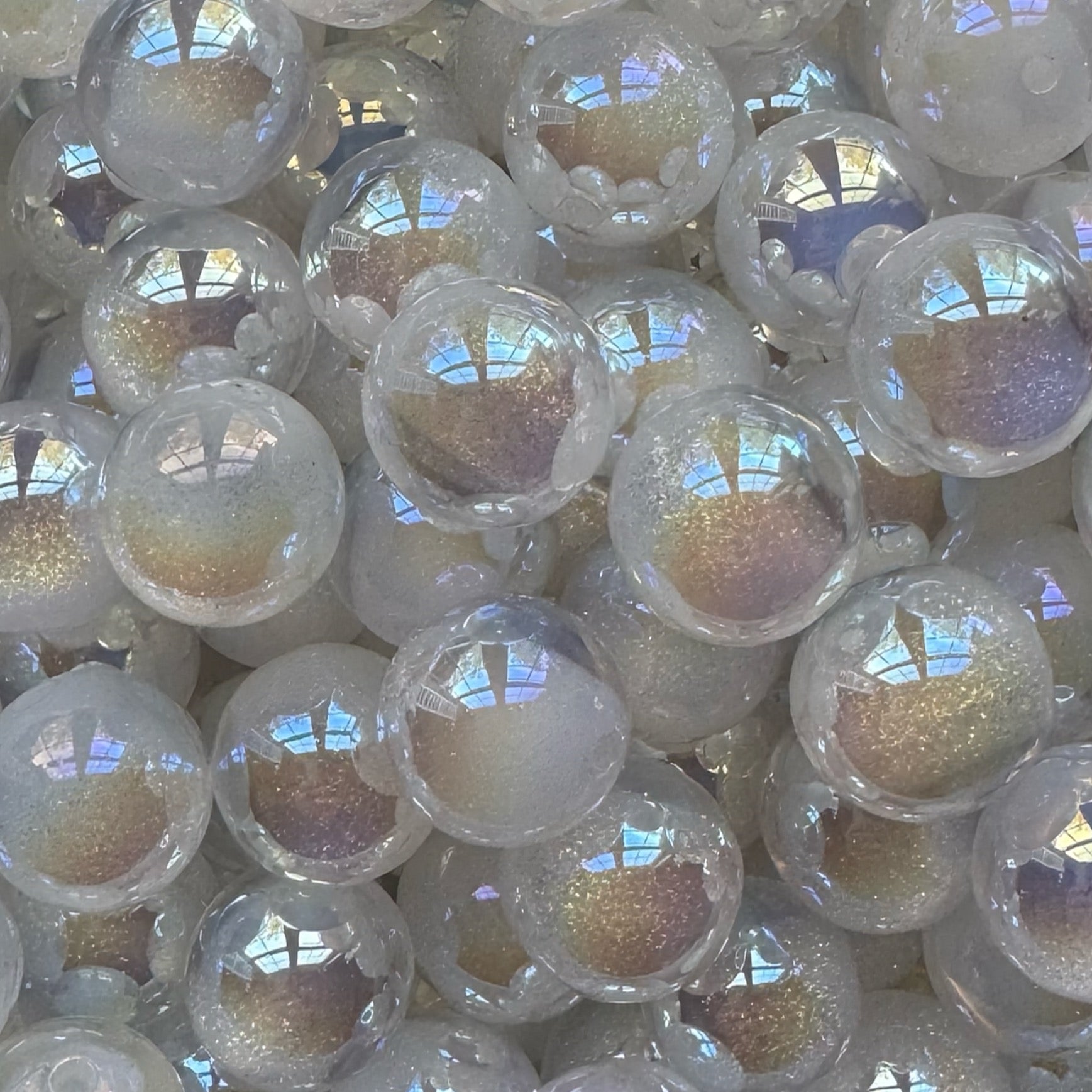 16mm Cat Eye Glitter Acrylic Bead (White)