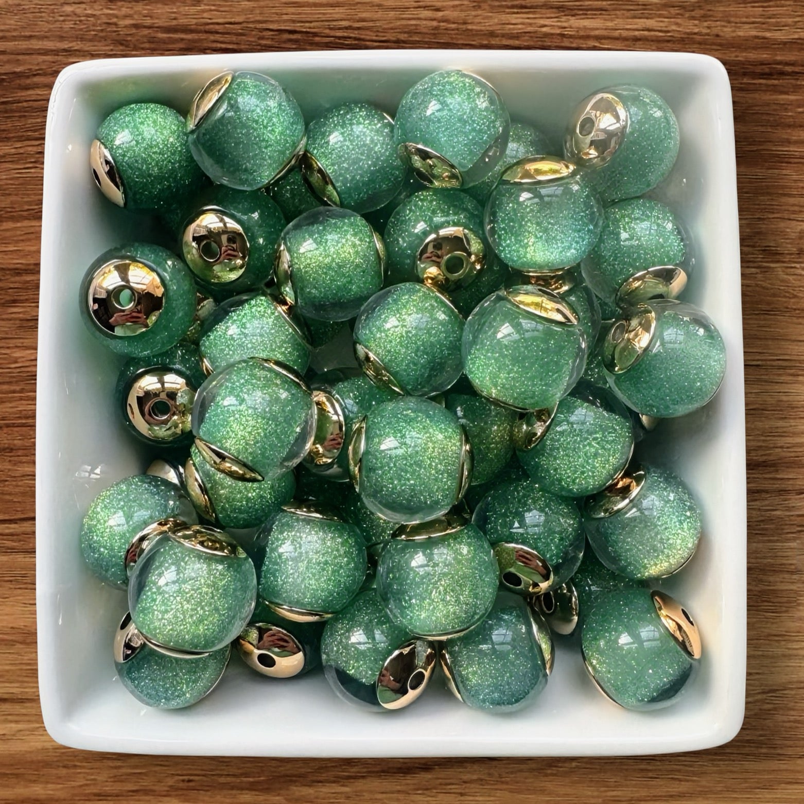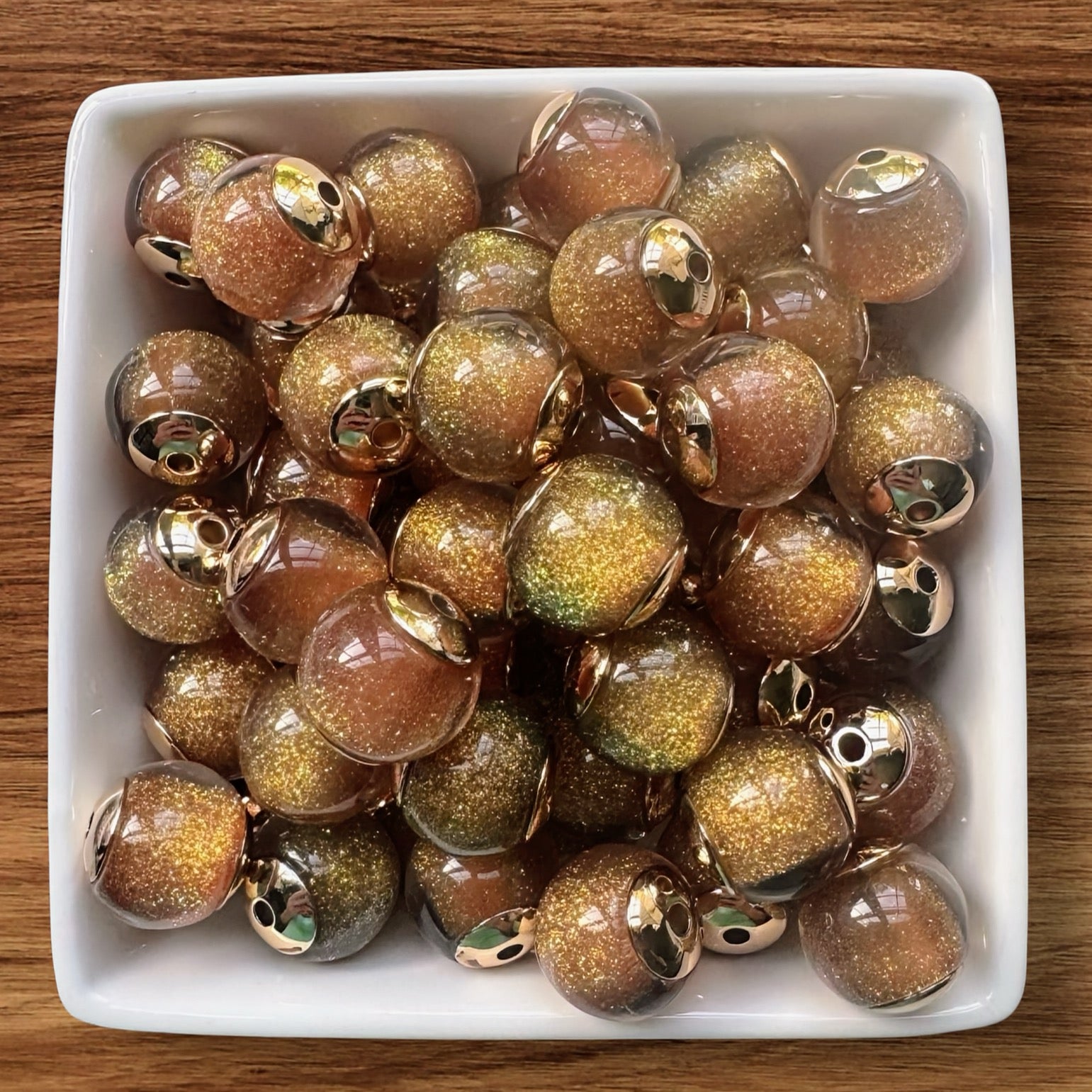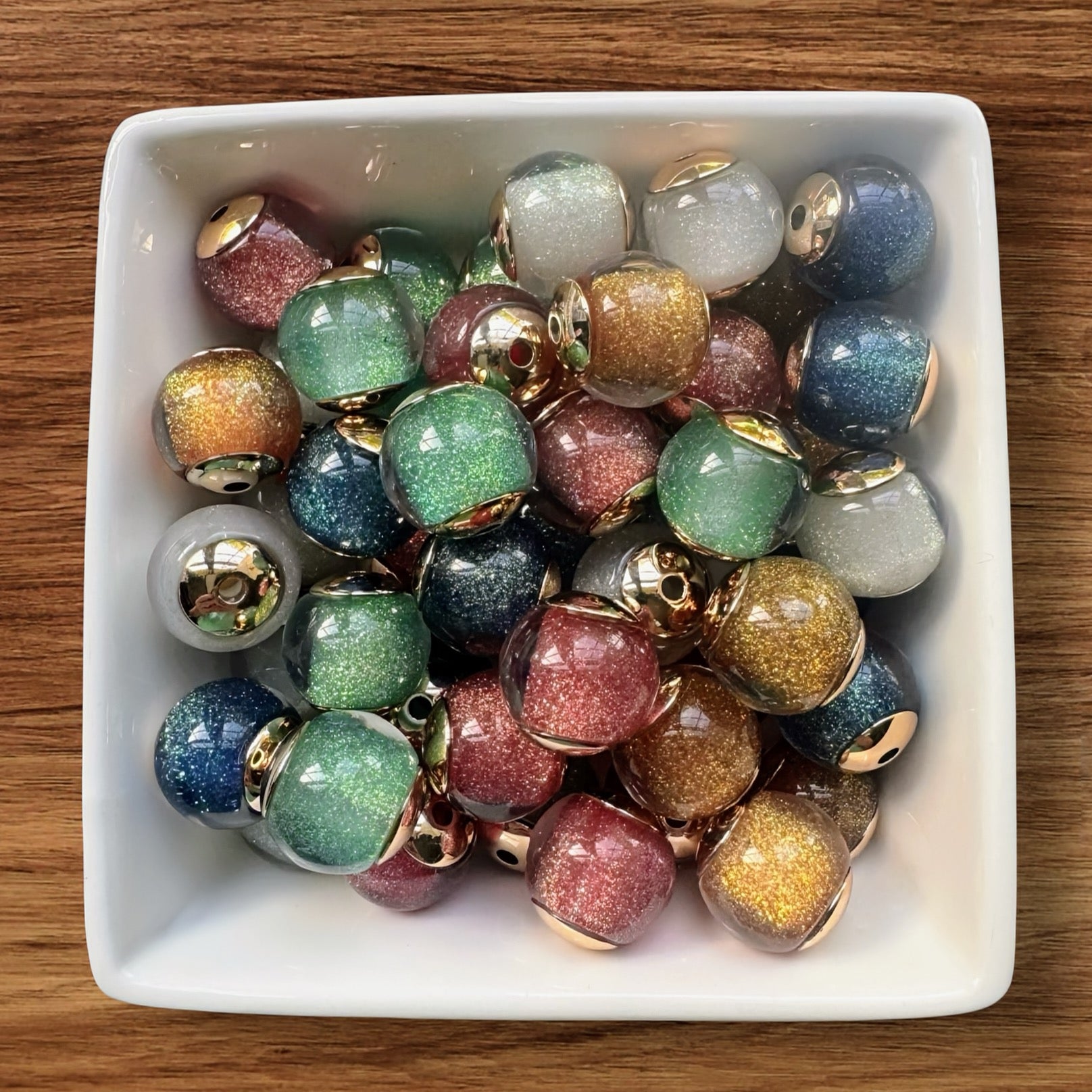 16mm Glitter Cat Eye Acrylic Bead With Gold Caps