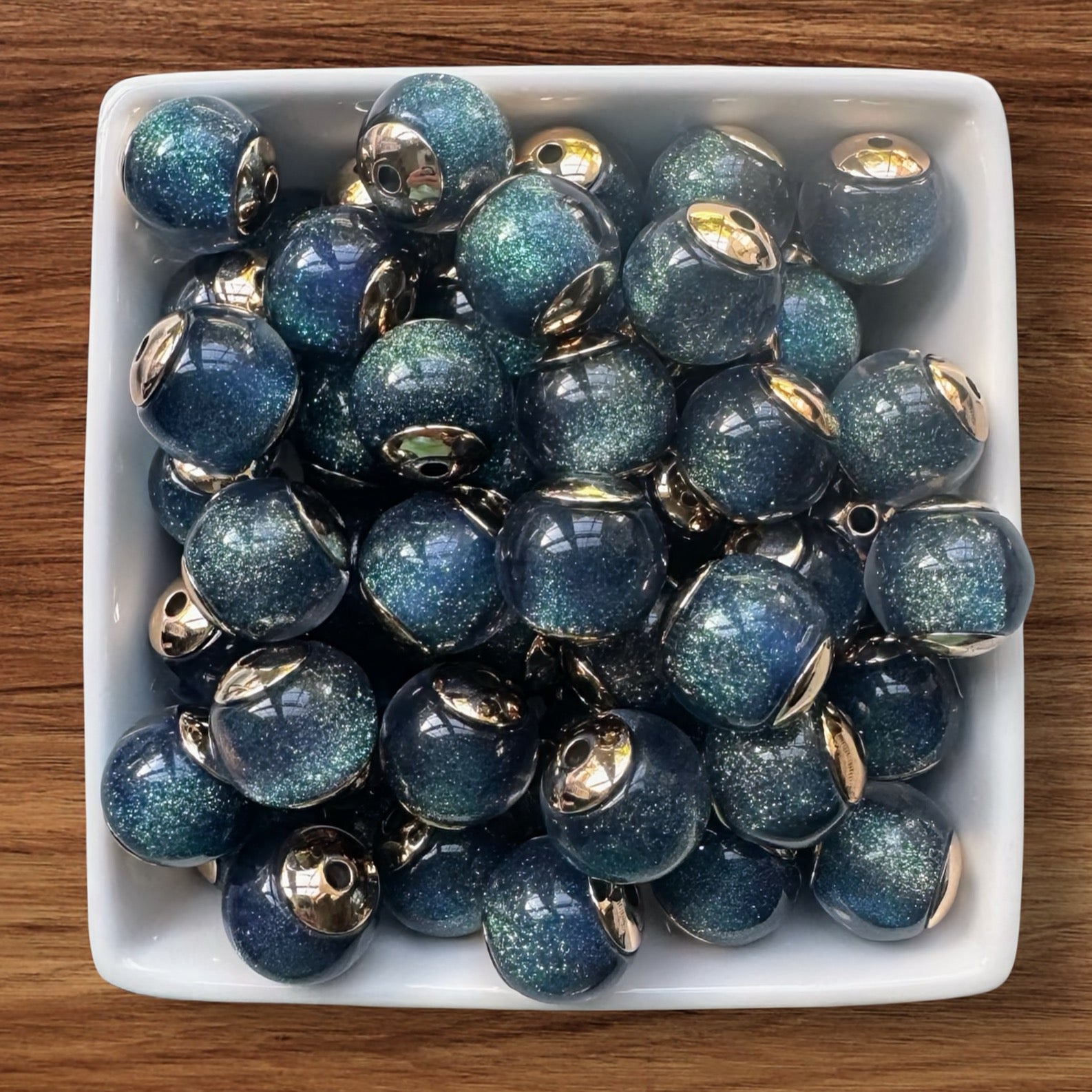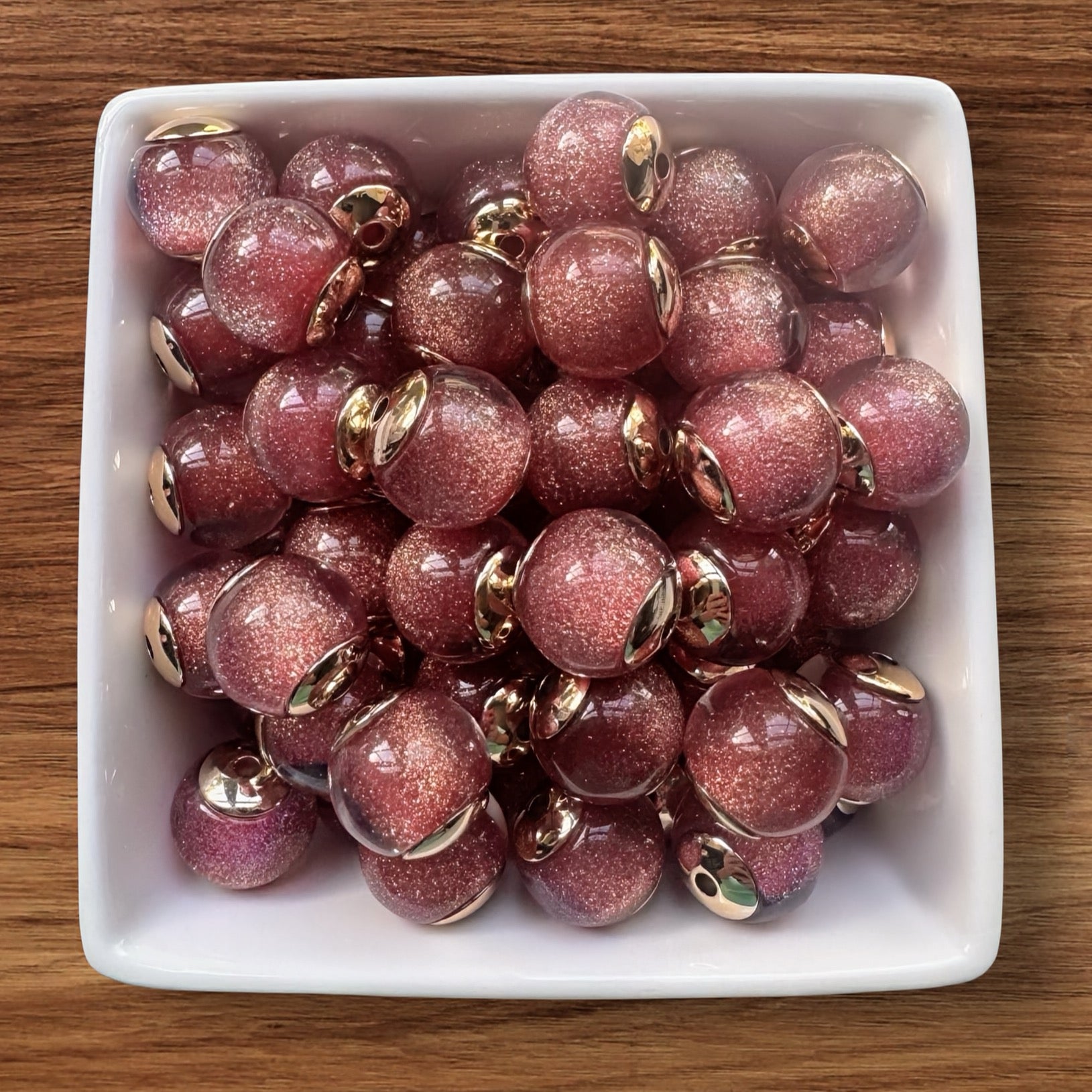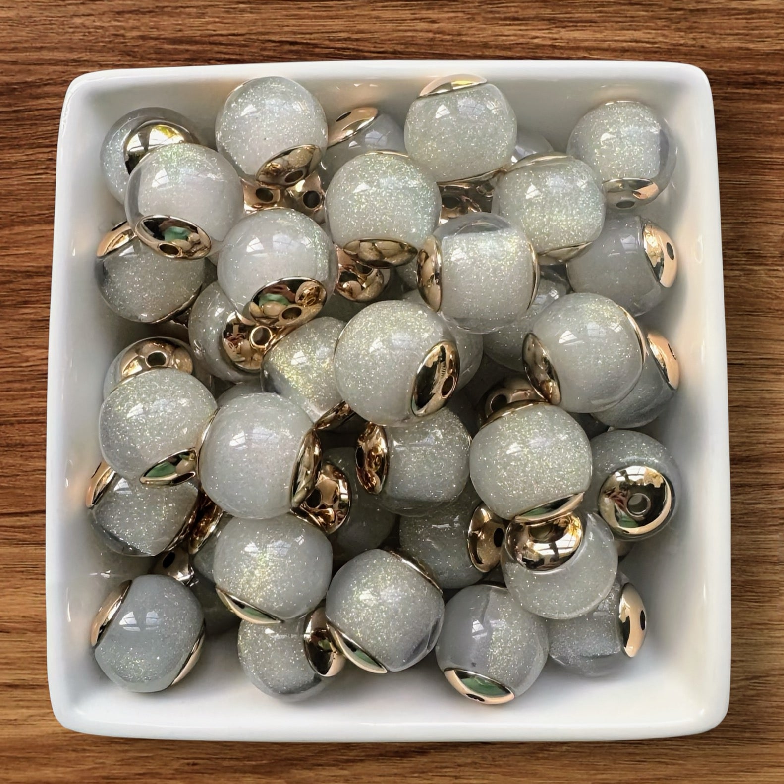 16mm Glitter Cat Eye Acrylic Bead With Gold Caps