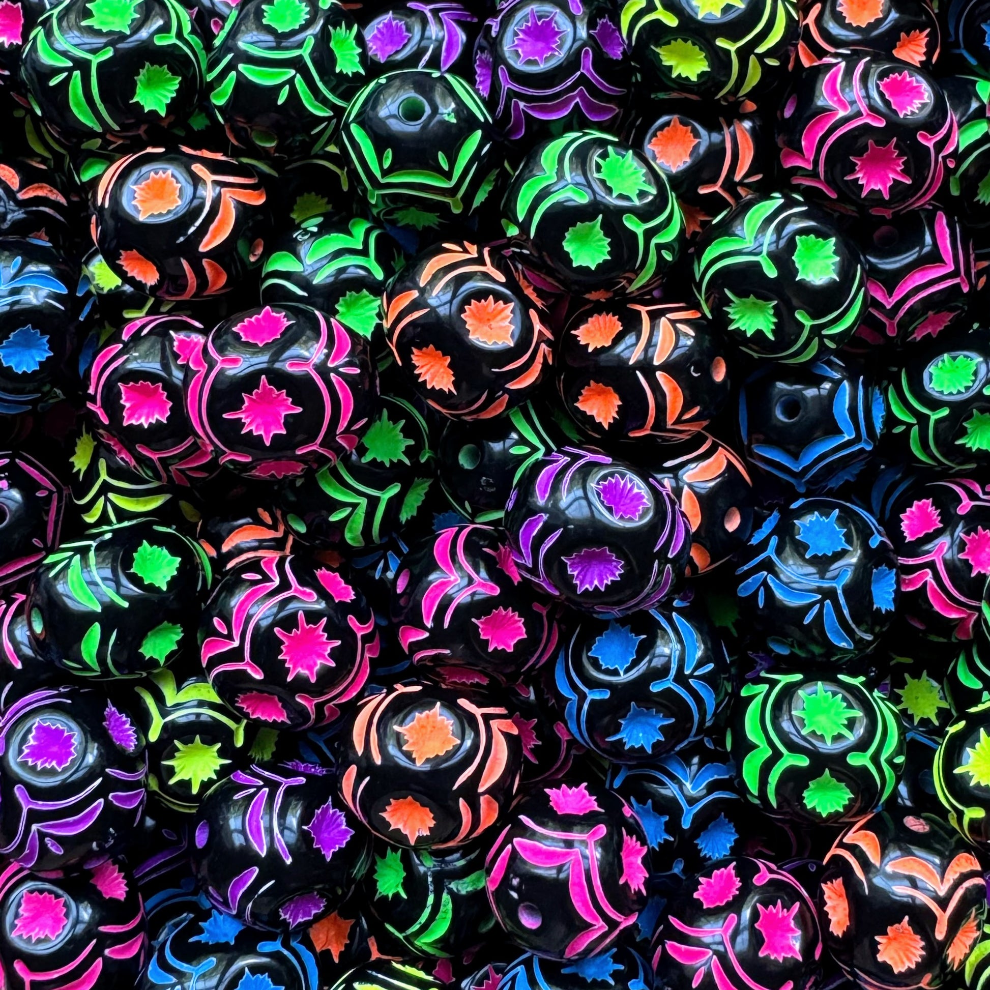 16mm Neon & Black Acrylic Beads