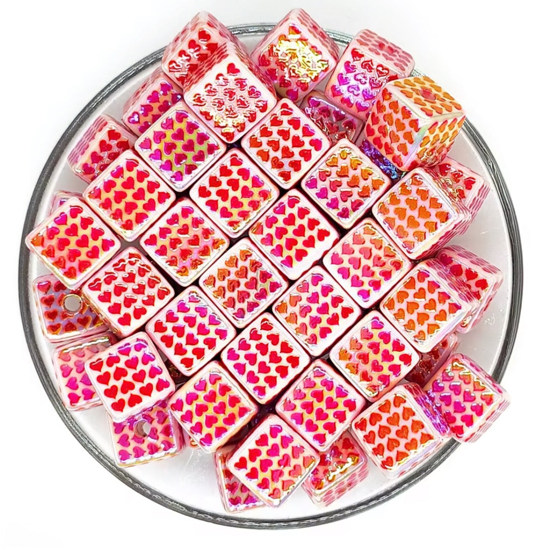 16mm Square Acrylic Hearts Bead