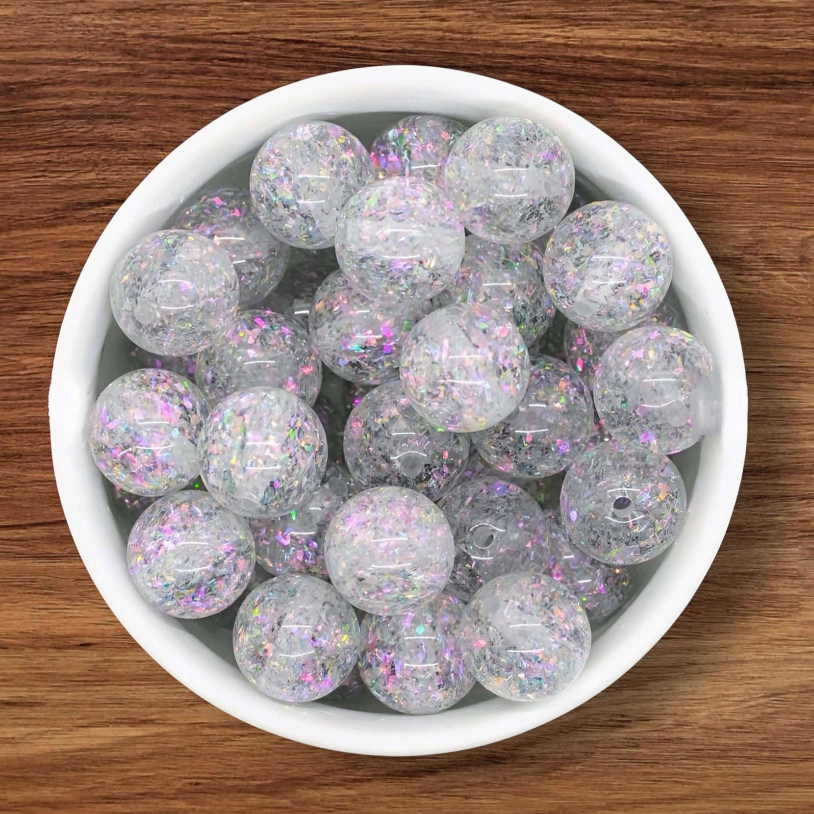 16mm White Holographic Acrylic Bead