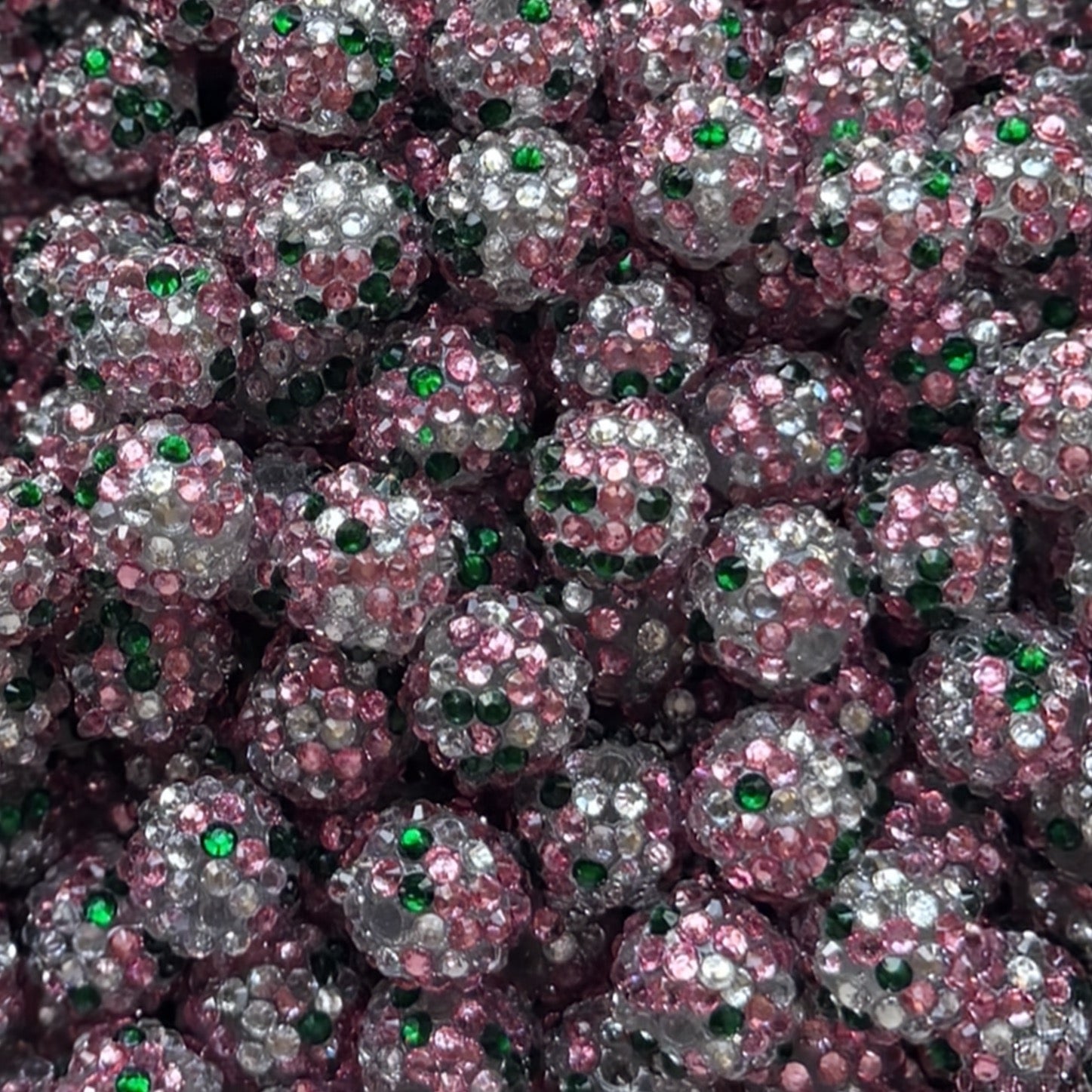 20mm Pink & Green Rhinestone Acrylic Bead