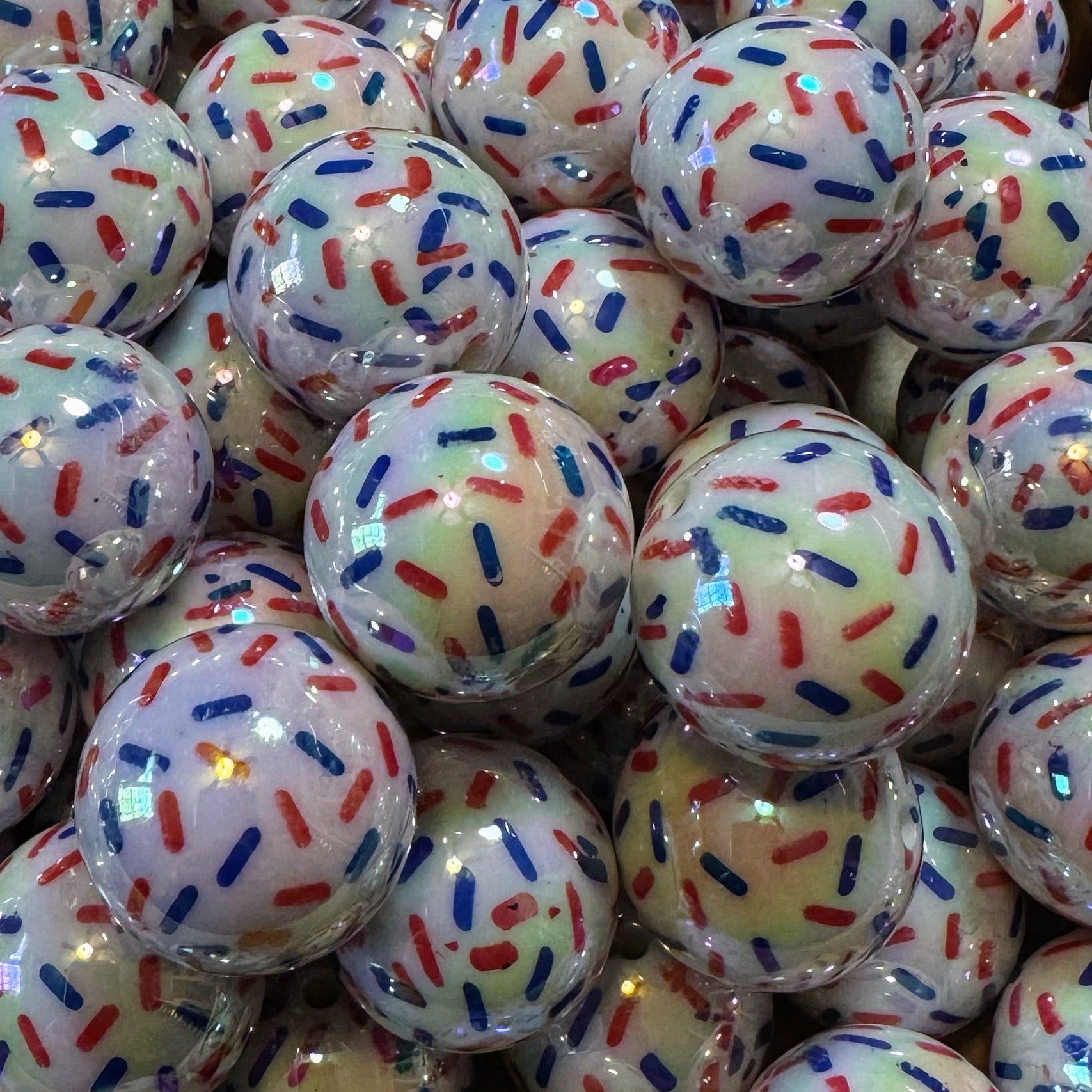 20mm Red/Blue Sprinkle Iridescent Acrylic Bead