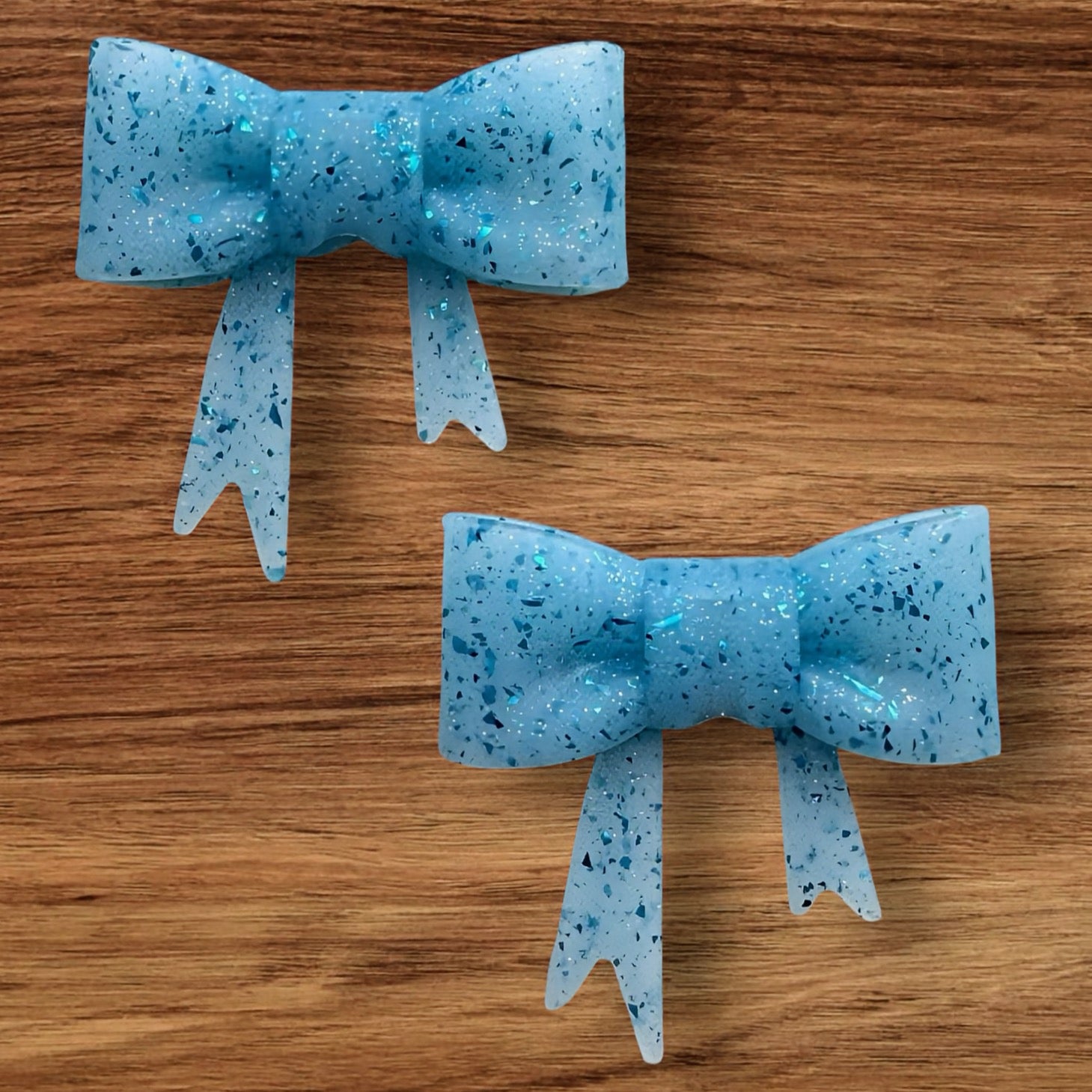 Blue Chunky Glitter Bow Focal/Straw Topper