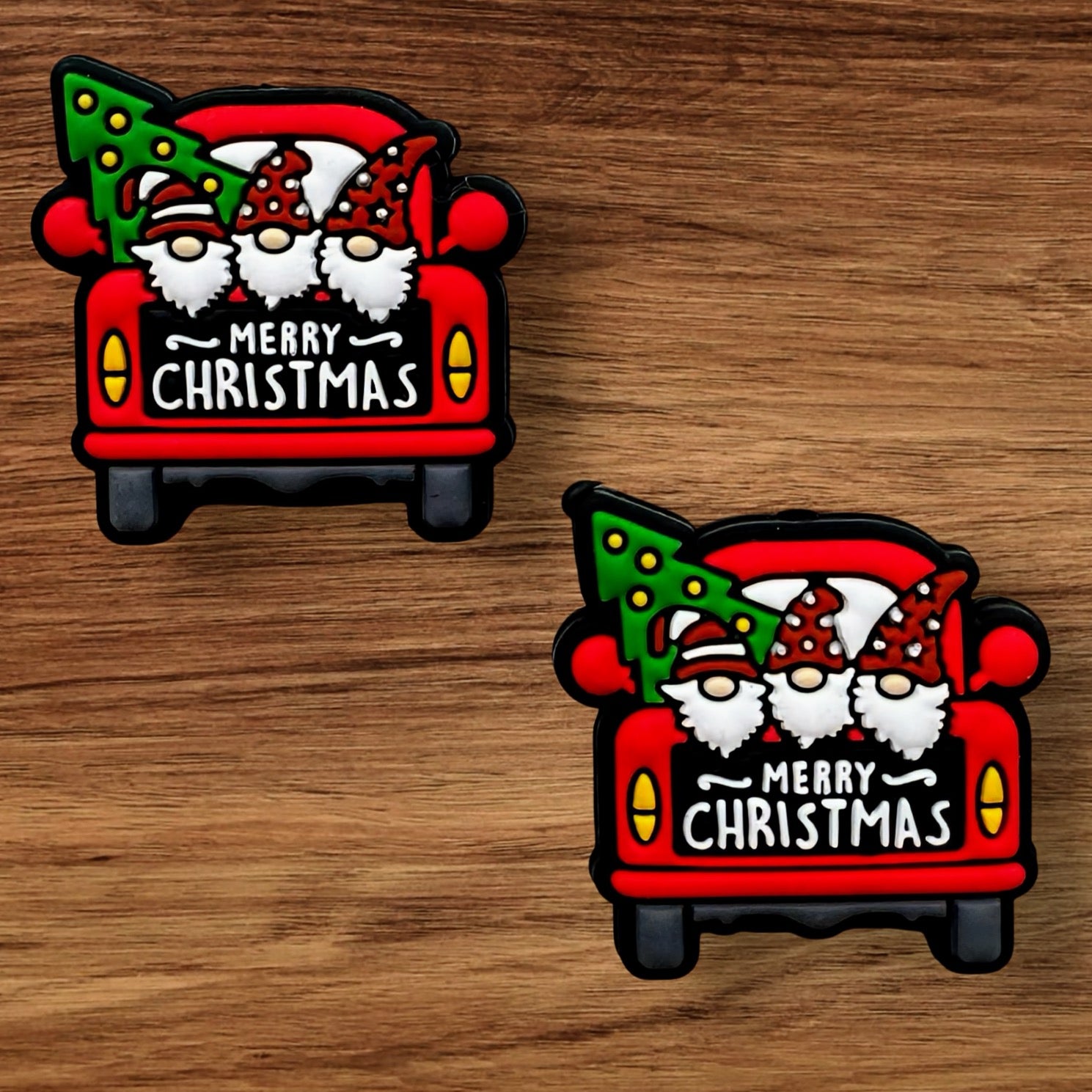 Merry Christmas Gnomes In Red Truck Focal