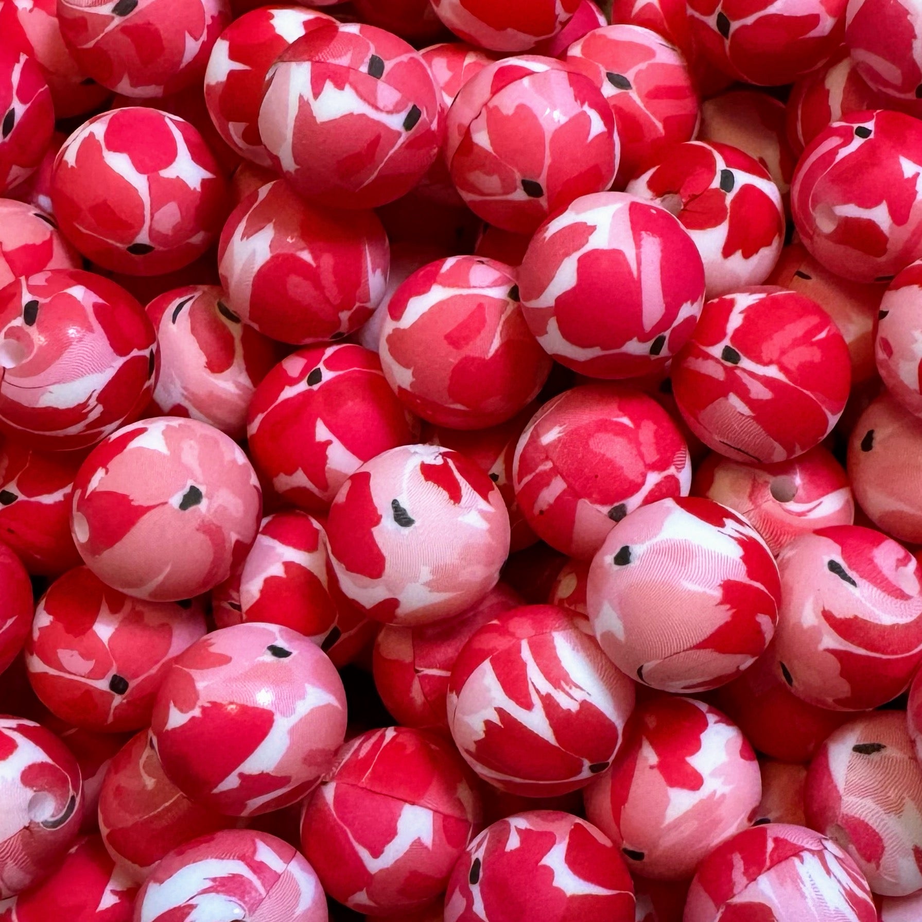 15mm Red Posy Silicone Bead