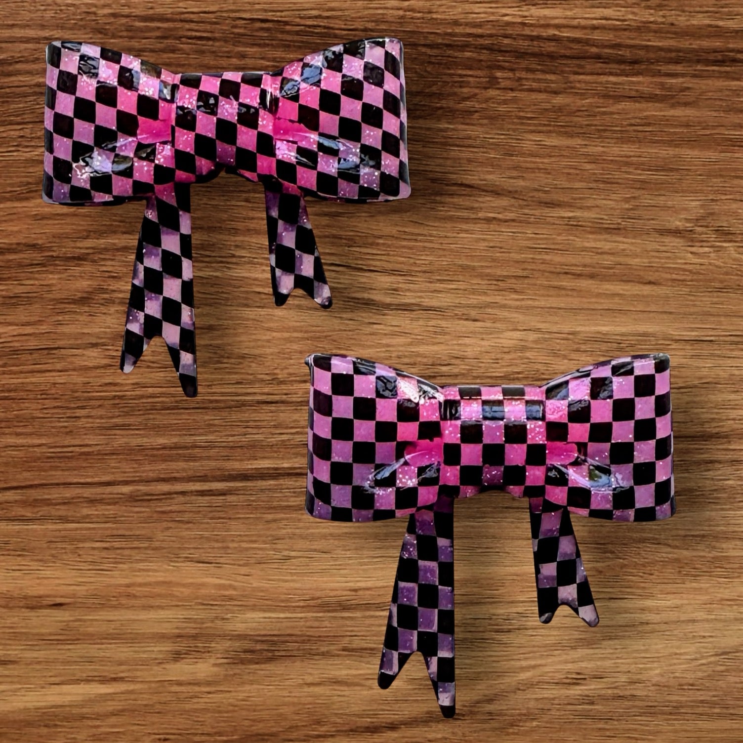 Shiny Hot Pink Checkered Bow Focal/Straw Topper