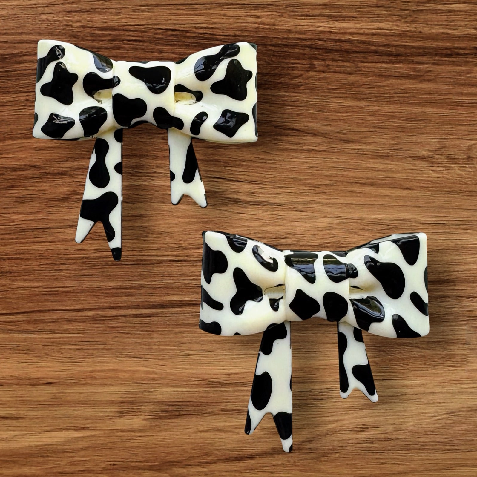 Shiny Off White Cow Print Bow Focal/Straw Topper