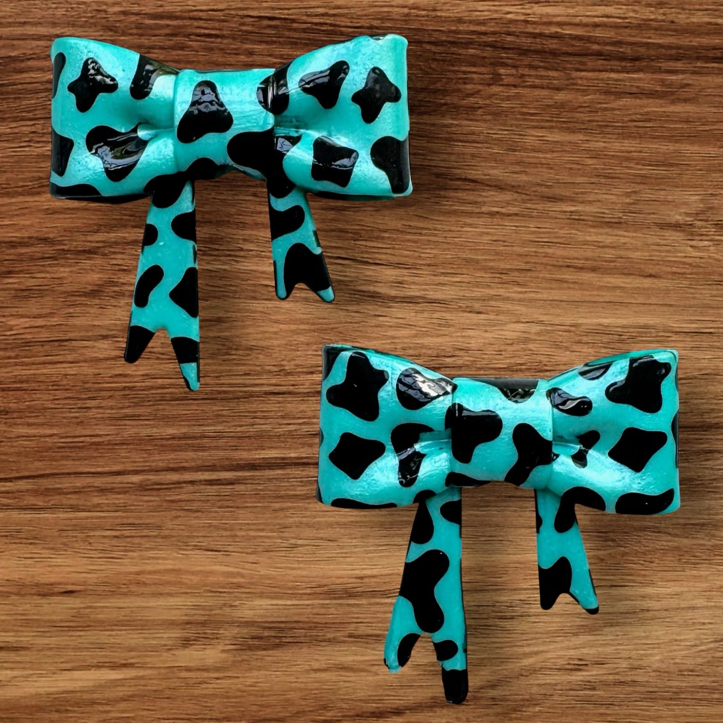 Shiny Turquoise Pearl Cow Print Bow Focal/Straw Topper