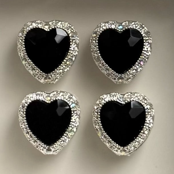 Silver Heart Black Gemstone Bead