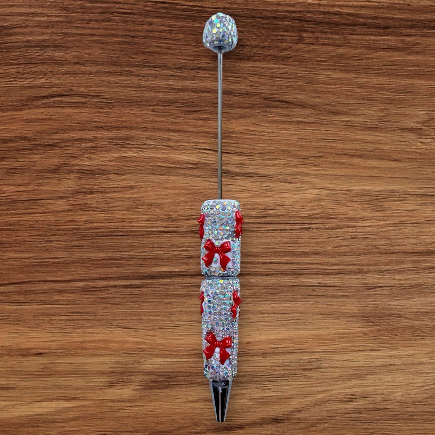 Silver Rhinestone With Bows Beadable Pen