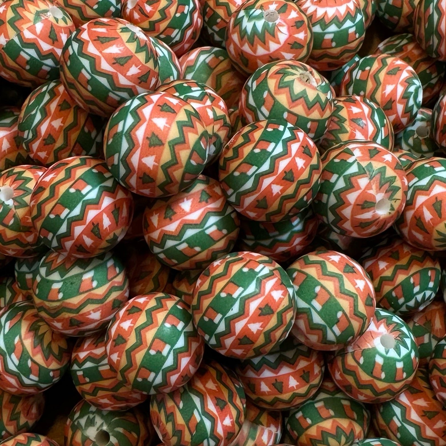 15mm Xmas Aztec Silicone Bead